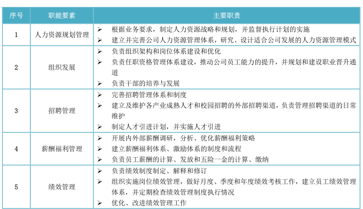 人力资源经理职位说明